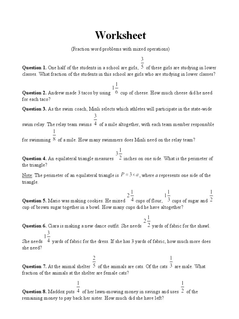 Locating complimentary Worksheet 3 (fraction word problems with mixed operations) can be effortless and accessible, you might utilize the web browser and check out online platforms that specialize in giving free resources. Be careful about the online platforms you explore, opt for reputable sites that give premium, correct resources.